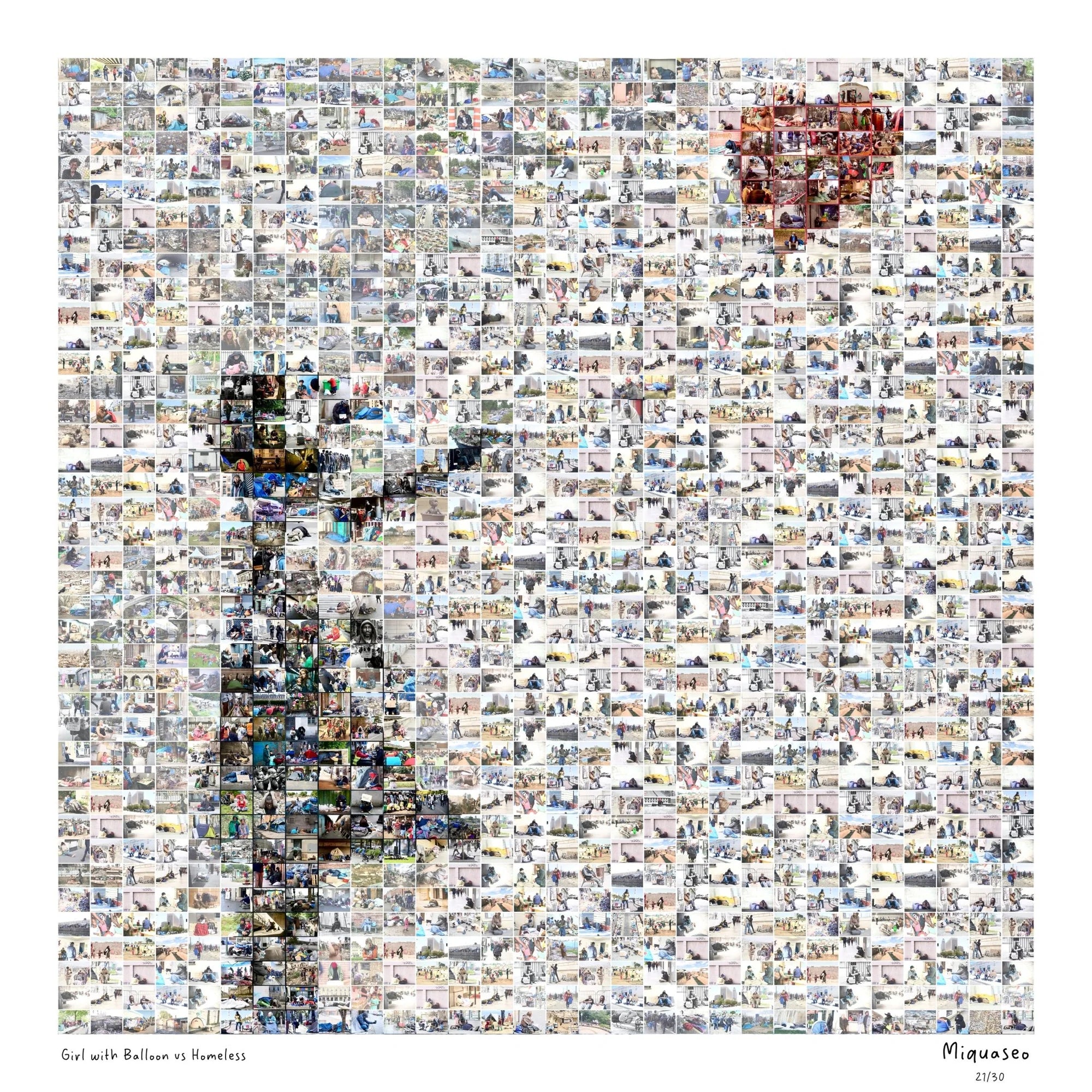 Girl with balloon vs Homeless – opera plexiglass 70×70 cm di Miquaseo