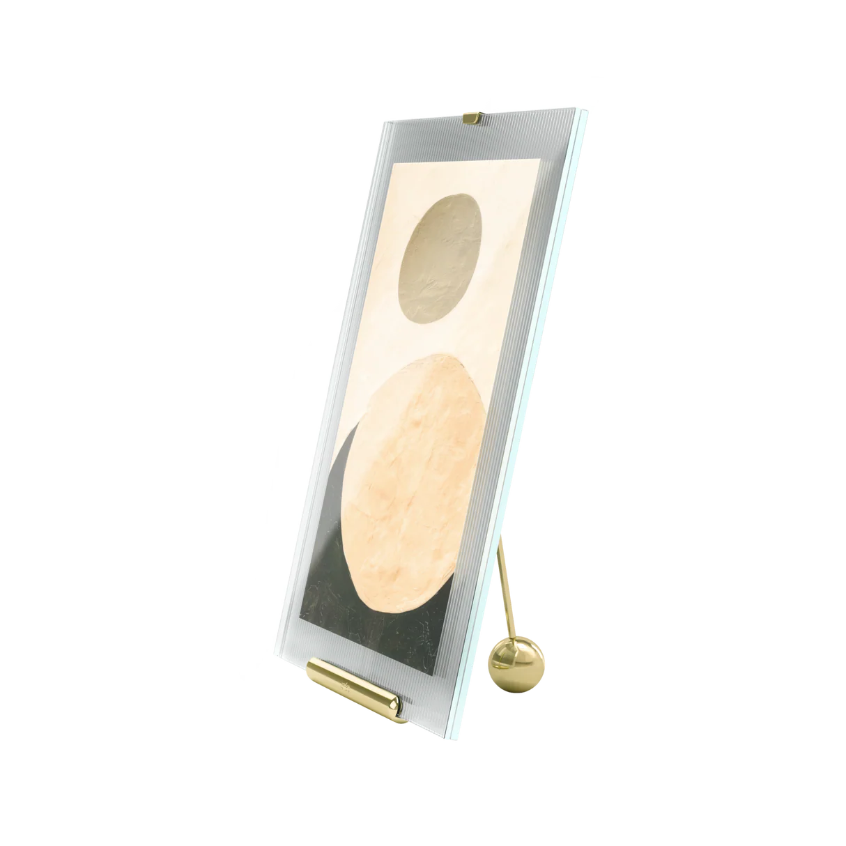La Cornice Portafoto Flute di Umbra è un elegante complemento d'arredo che unisce funzionalità e stile. Il design a cavalletto permette di posizionarla facilmente su qualsiasi superficie, mentre la struttura in vetro rigato conferisce un tocco di raffinatezza. La base in metallo assicura stabilità e un supporto sicuro per le tue foto. Disponibile in diverse dimensioni (10x15 cm, 13x18 cm, 20x25 cm) e finiture (nero, ottone, cromo), questa cornice si adatta a vari ambienti, dal moderno al classico. È ideale per esporre fotografie, opere d'arte o illustrazioni, sia in orientamento verticale che orizzontale.