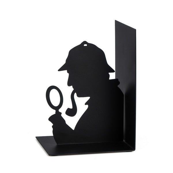 Il fermalibri Sherlock – Nero unisce funzionalità e design letterario: realizzato in metallo verniciato, presenta la sagoma stilizzata di Sherlock Holmes con pipa e lente d'ingrandimento, creando un effetto visivo distintivo.