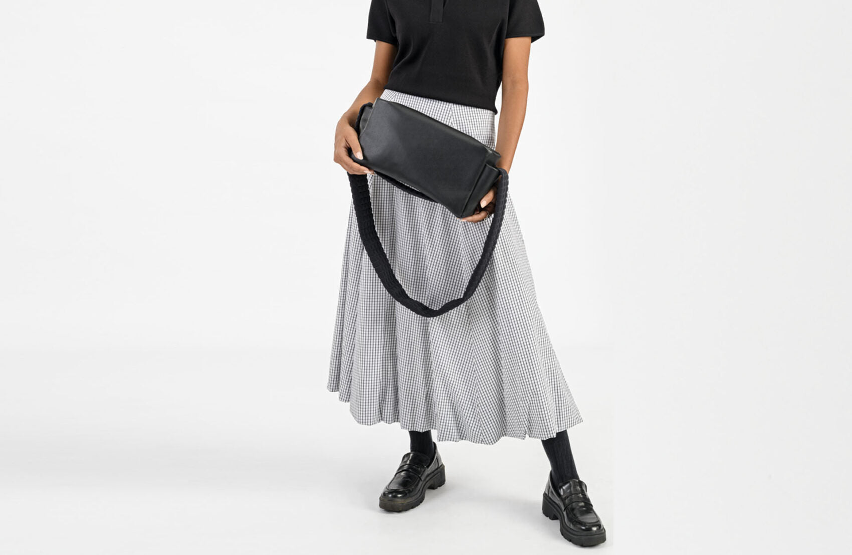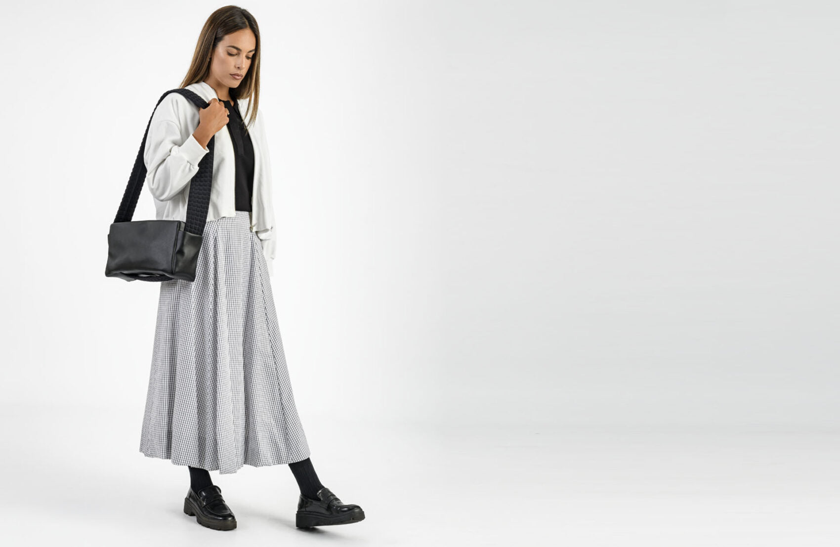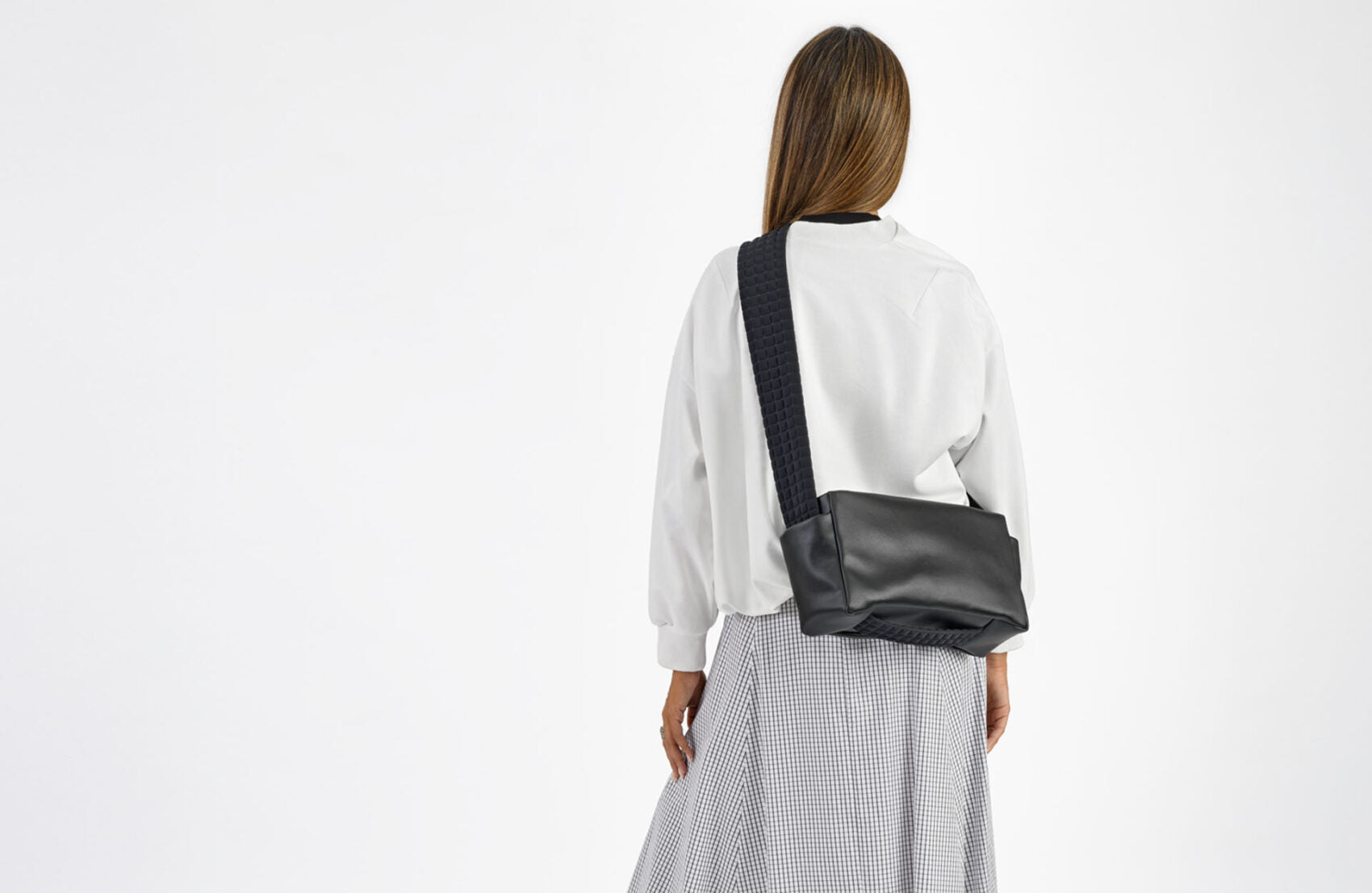La Brick Bag di IN.ZU in versione completamente nera unisce linee essenziali e materiale tecnico semirigido per un risultato formale ma contemporaneo. Il design “blocchetto” dalle superfici addolcite, accompagnato dalla larga e soffice bretella, consente un uso quotidiano raffinato e senza rinunce. Grazie alla maniglia inferiore integrata, diventa facile portarla anche a mano quando desideri un look più curato.