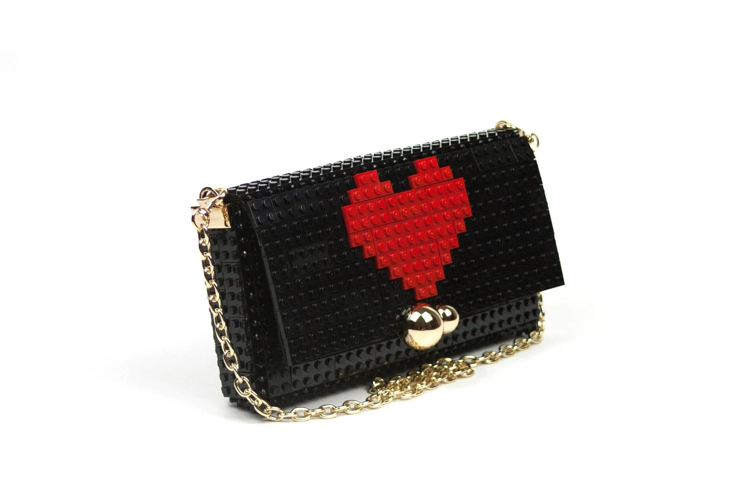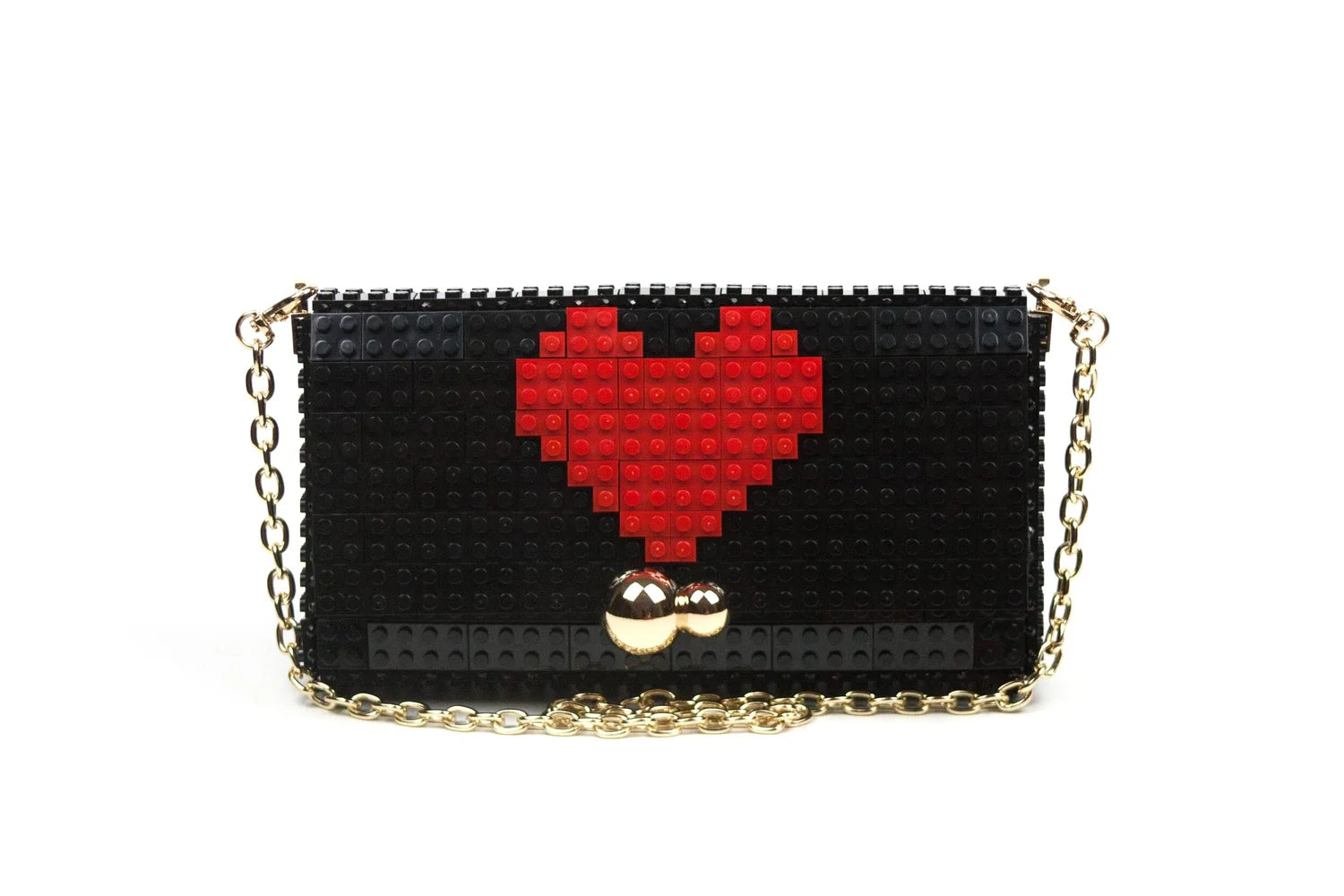 La Borsa BLOCK con tracolla – Heart Black è un accessorio che unisce ironia e design modulare, perfetto per chi ama borse con carattere e dettagli originali. Realizzata con blocchi ABS assemblati a mano e decorata con un motivo a cuore nella parte superiore, questa clutch porta un tocco di personalità nelle tue giornate e nelle tue serate.