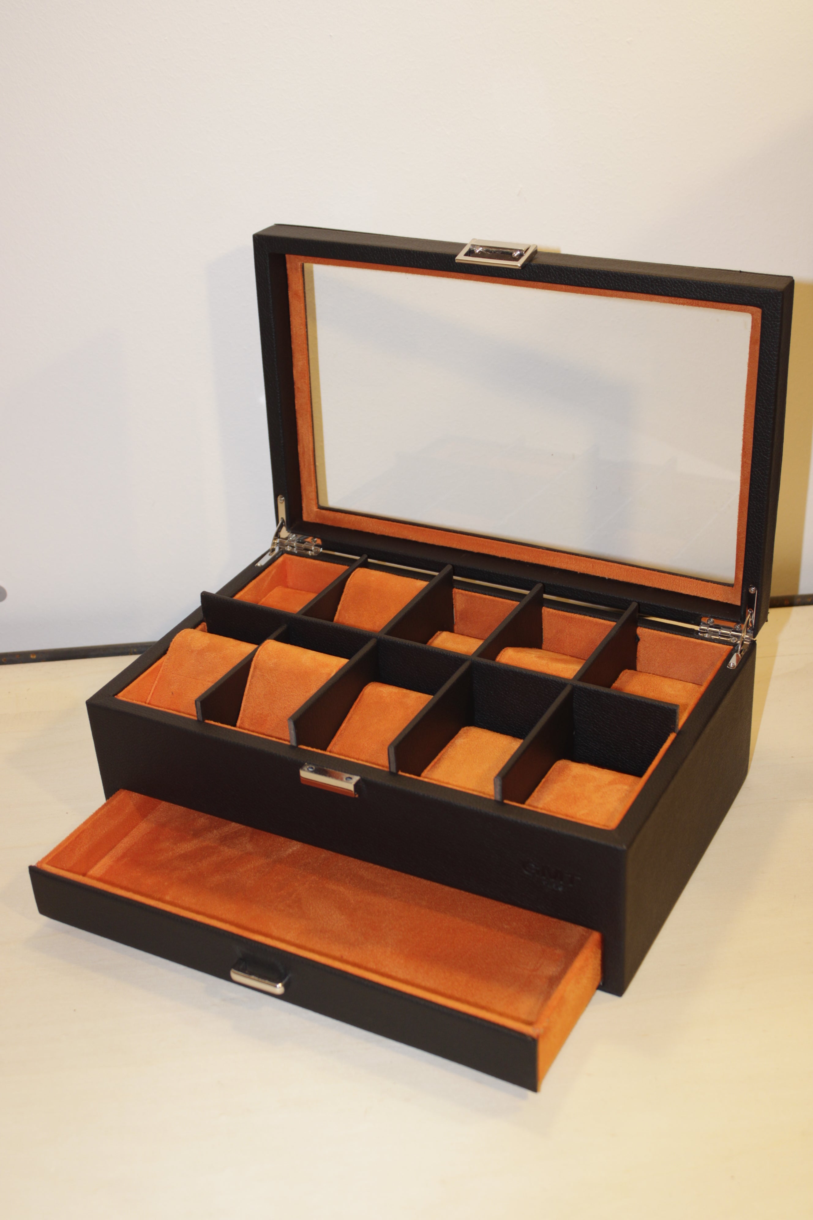 Porta orologi grande da 10 – nero e arancione